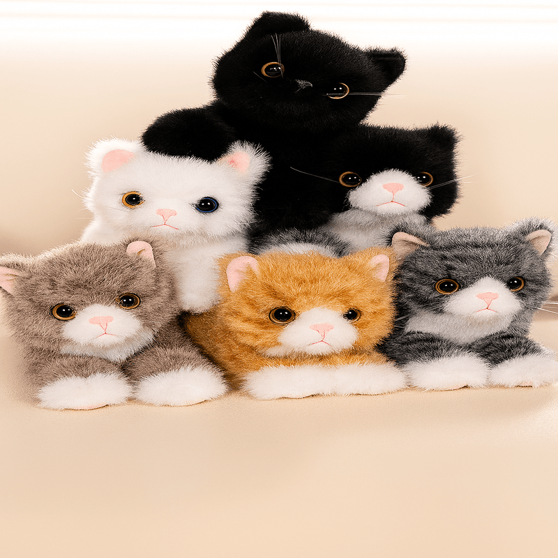 Un concentré de tendresse avec ces chats en peluche ultra-réalistes ! Leurs grands yeux doux, leur pelage moelleux et leur posture allongée en font des compagnons câlins irrésistibles. À collectionner, offrir ou serrer contre soi sans modération.