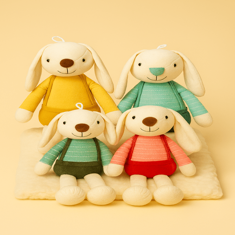 Ces peluches de lapins en salopette sont tout simplement craquantes ! Avec leurs tenues colorées, leurs longues oreilles et leurs sourires doux, elles apportent réconfort et joie aux enfants. Un compagnon parfait pour les câlins et les aventures tendres.