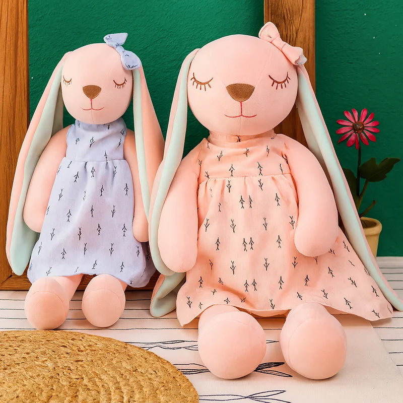 Plongez dans la tendresse avec ces peluches lapins endormis, douces et apaisantes. Leurs robes pastel et leurs oreilles tombantes en font des compagnons adorables, parfaits pour câliner ou décorer une chambre d’enfant avec douceur et poésie.