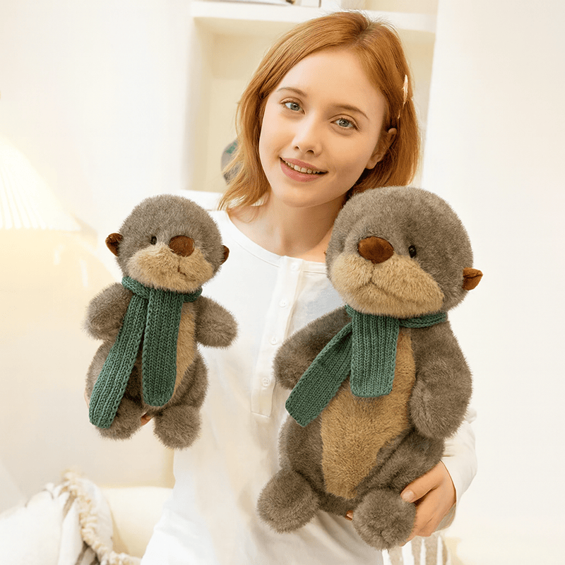 Adoptez les peluches loutre avec écharpe et apportez douceur et tendresse à votre quotidien ! Ces adorables loutres, vêtues d’une écharpe tricotée verte, se déclinent en deux tailles pour plaire aux petits comme aux grands. Leur fourrure douce et leur regard attendrissant en font des compagnons parfaits pour câliner ou décorer votre intérieur. Idéales comme cadeau ou pour se faire plaisir, elles sauront réchauffer les cœurs et ajouter une touche de chaleur et de charme à votre espace de vie.