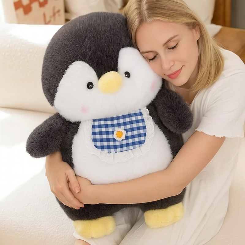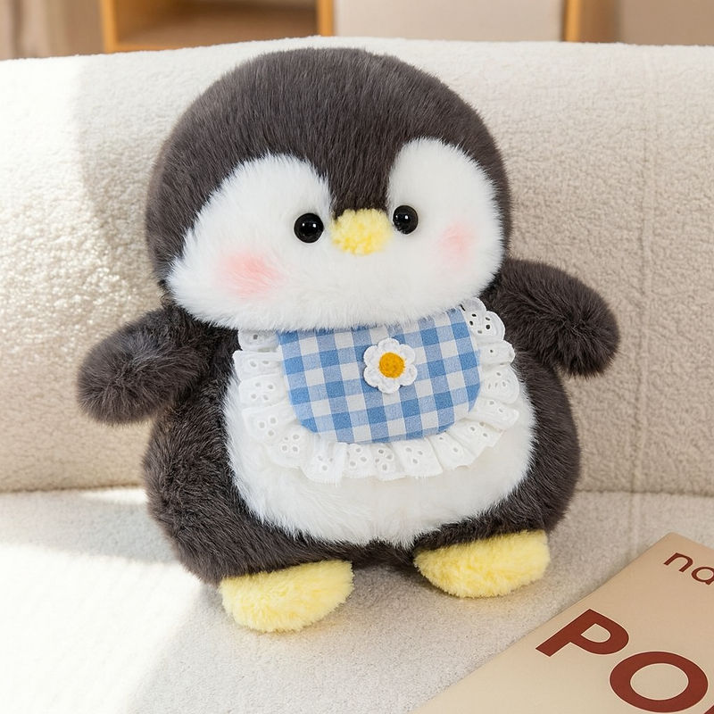 Découvrez cette adorable peluche pingouin kawaii au style irrésistible ! Avec son petit bavoir à carreaux et son air malicieux, elle fera fondre petits et grands. Douce, câline et pleine de charme, elle est incontournable.