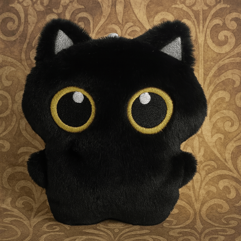 Ce petit chat noir en peluche séduit par ses grands yeux jaunes expressifs et ses oreilles pointues. Accroché à un sac grâce à son porte-clés, il apporte une touche mignonne et originale à votre style au quotidien.